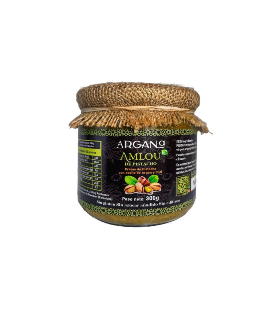 El amlou de pistacho es una deliciosa pasta marroquí elaborada a base de pistacho tostado, aceite de argán y miel. Su textura es cremosa y suave, con un sabor nutty y ligeramente dulce que lo convierte en un acompañamiento perfecto para el pan, tostadas o como un dip.